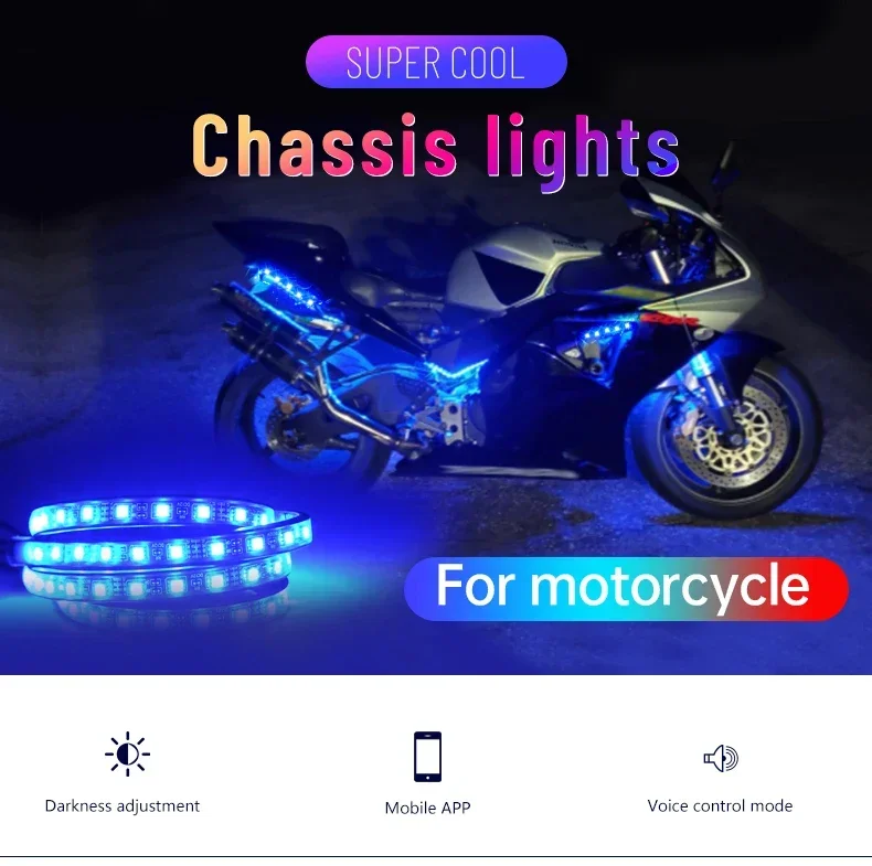 RGB APP LED Motorcycle Car Atmosphere Foot Light Remote Control Flexible Waterproof Sound Control 12V Moto Decorative Lamp Strip