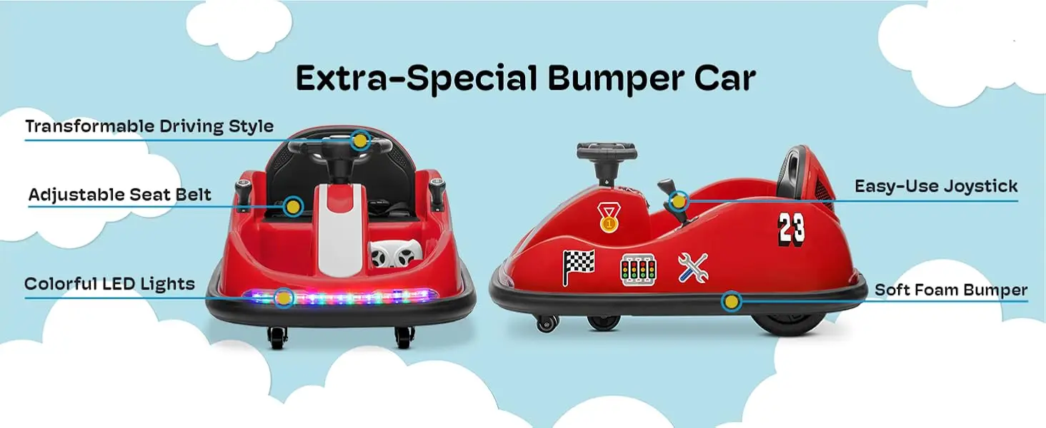 12V 2 Driving Mode (Steering Wheel/Joystick) Ride On Bumper Car