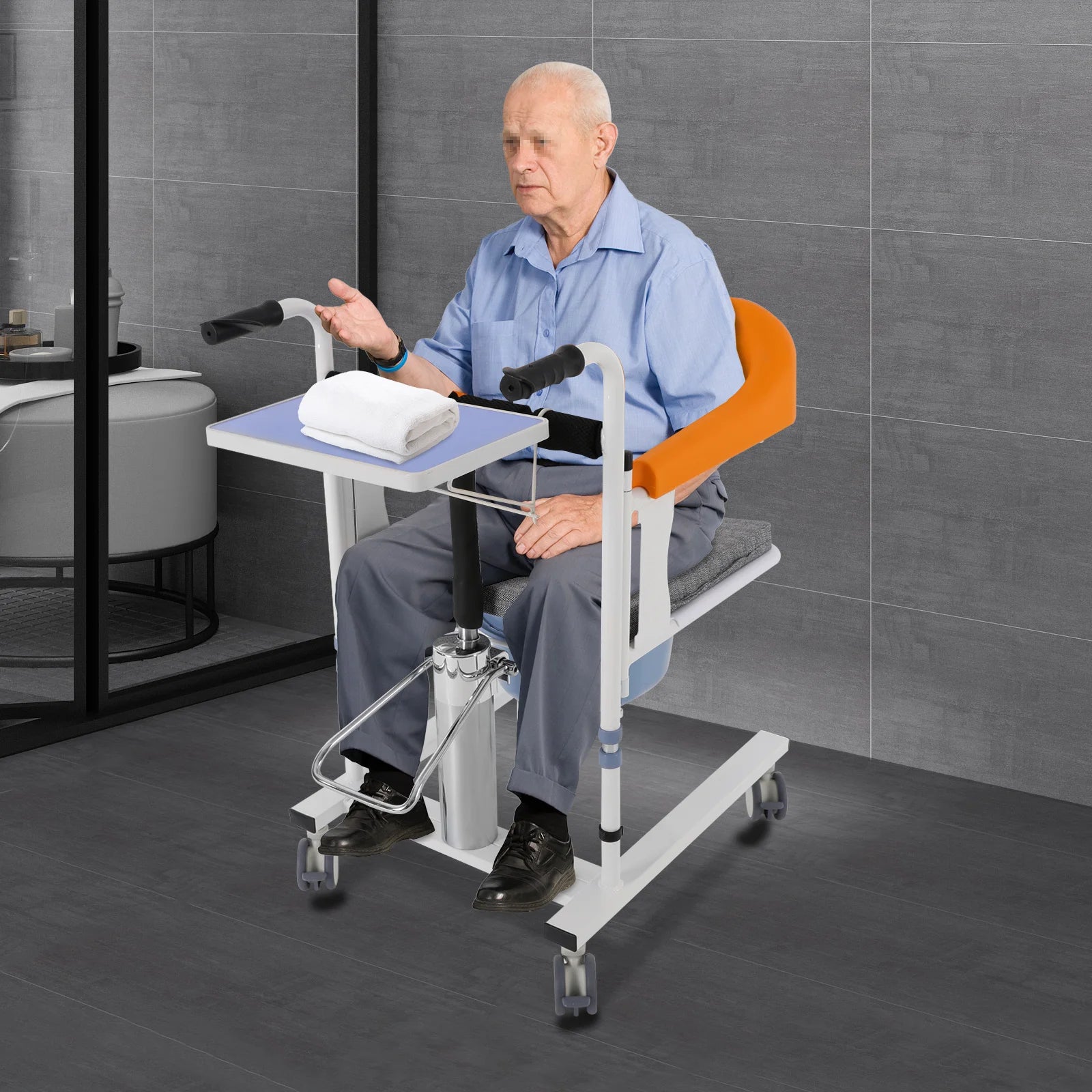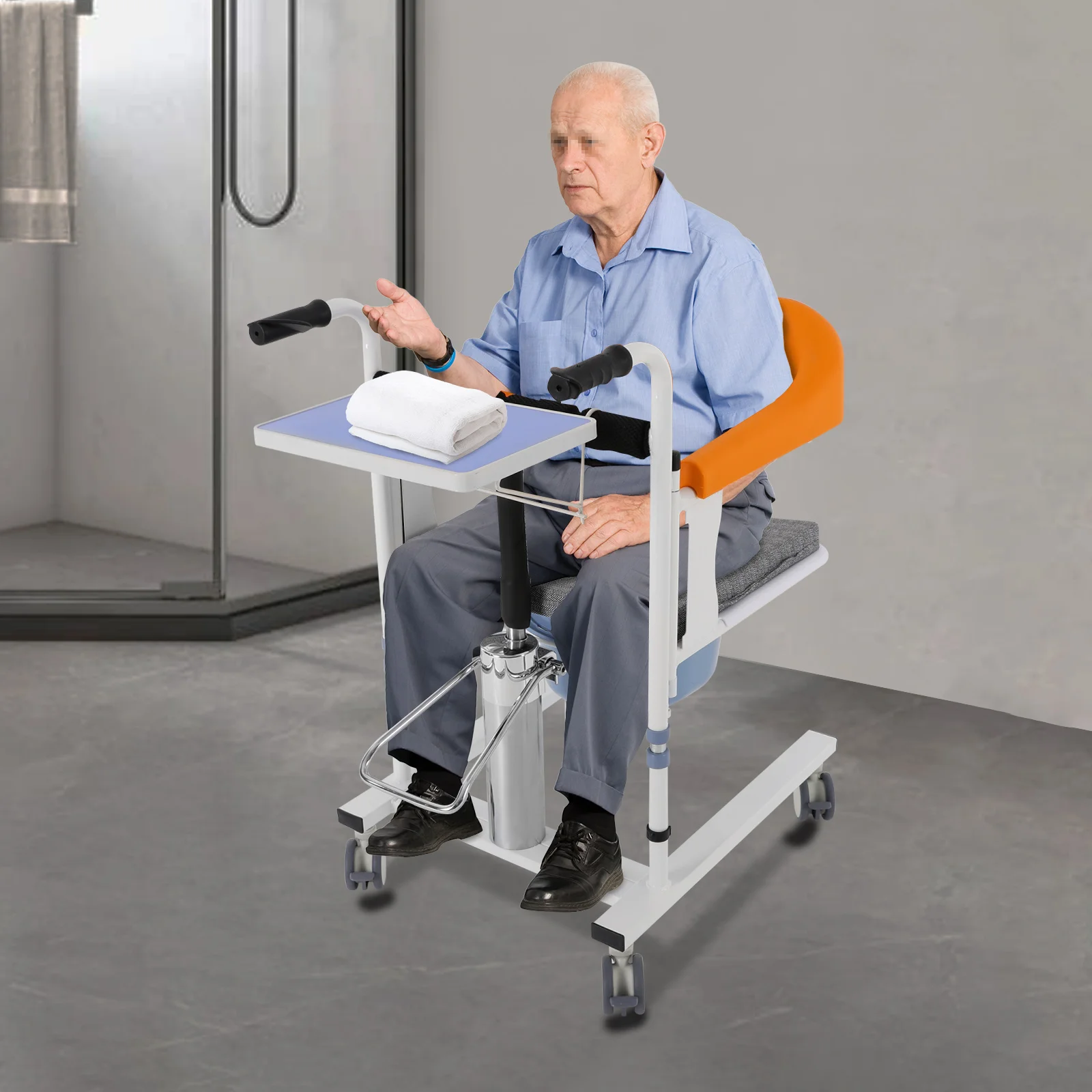 Our hydraulic patient lift wheelchair integrates safety and comfort. Adopting a stable hydraulic pump, a chamber pot, and a soft seat cushion, ensures convenient and worry-free transfer for users. Adjustable height design and 180° unfolded backrest make nursing easy. Whether at home or in medical facilities, it can provide gentle care for people with limited mobility.