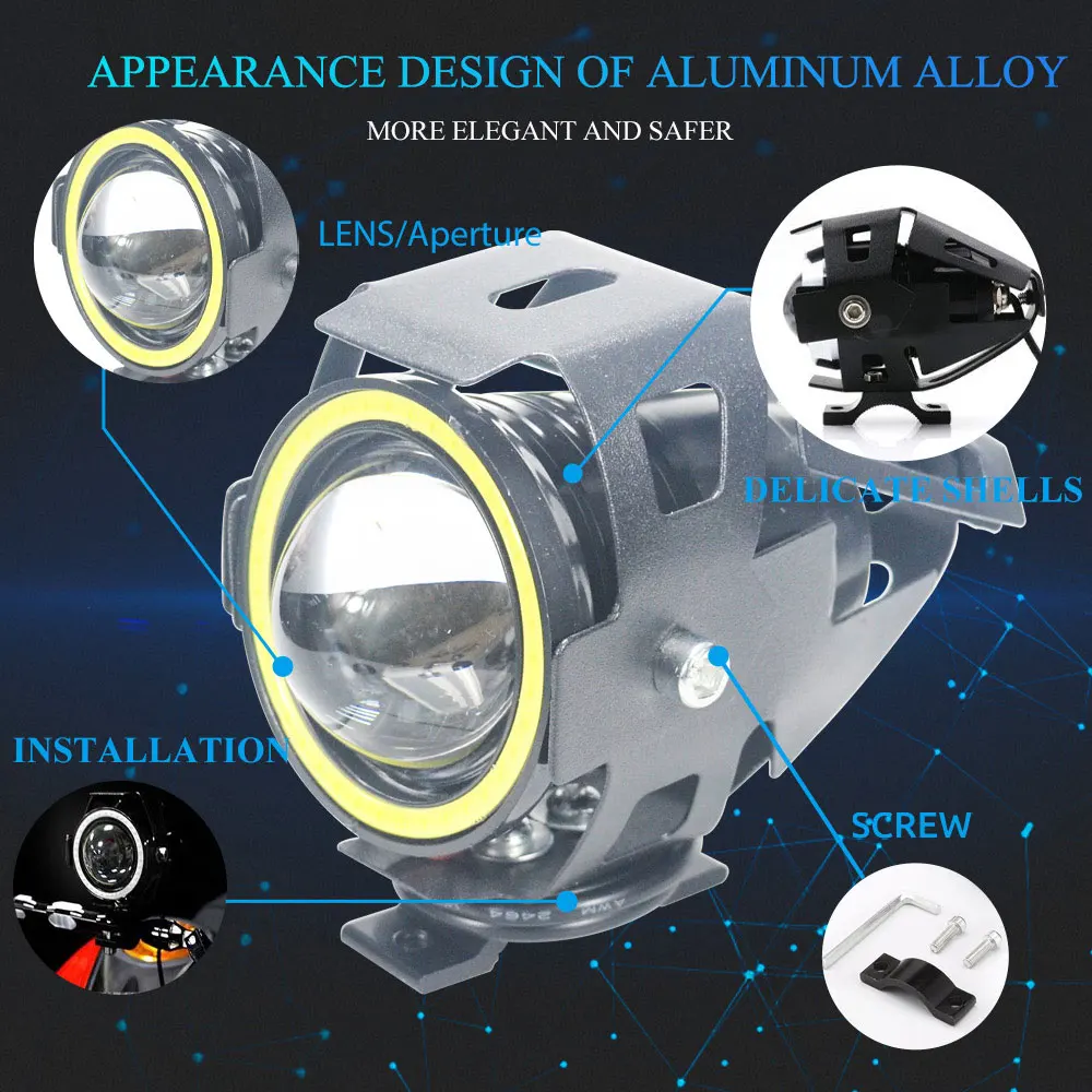 2×LED Angel Eye Motorcycle Headlights
