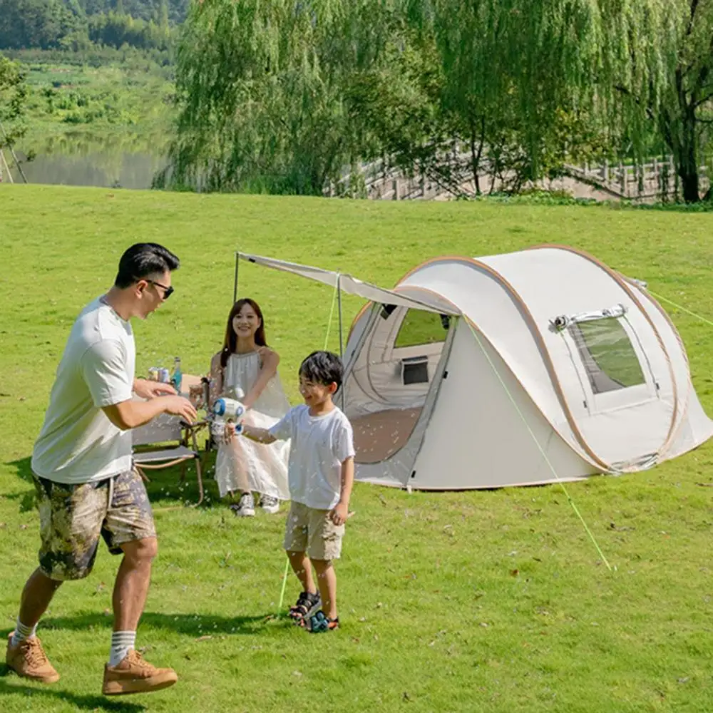 3.Hydrophobic Material: Set up camp in minutes with our pop-up tent. Plus, with its waterproof fabric and upgraded hydrophobic material, you can enjoy camping even on rainy days.