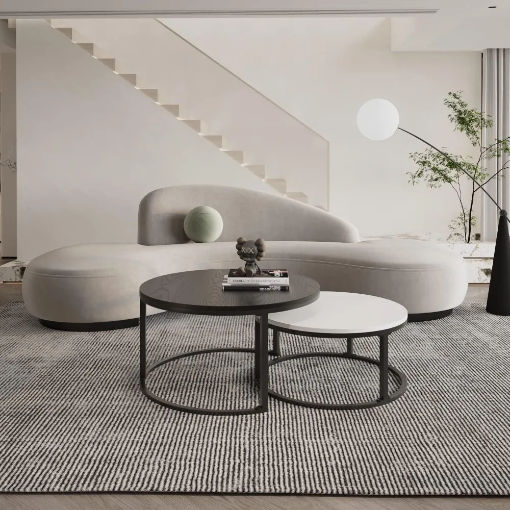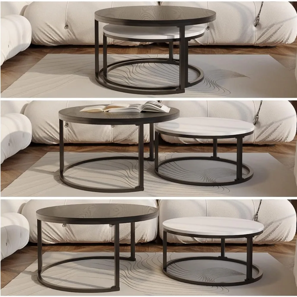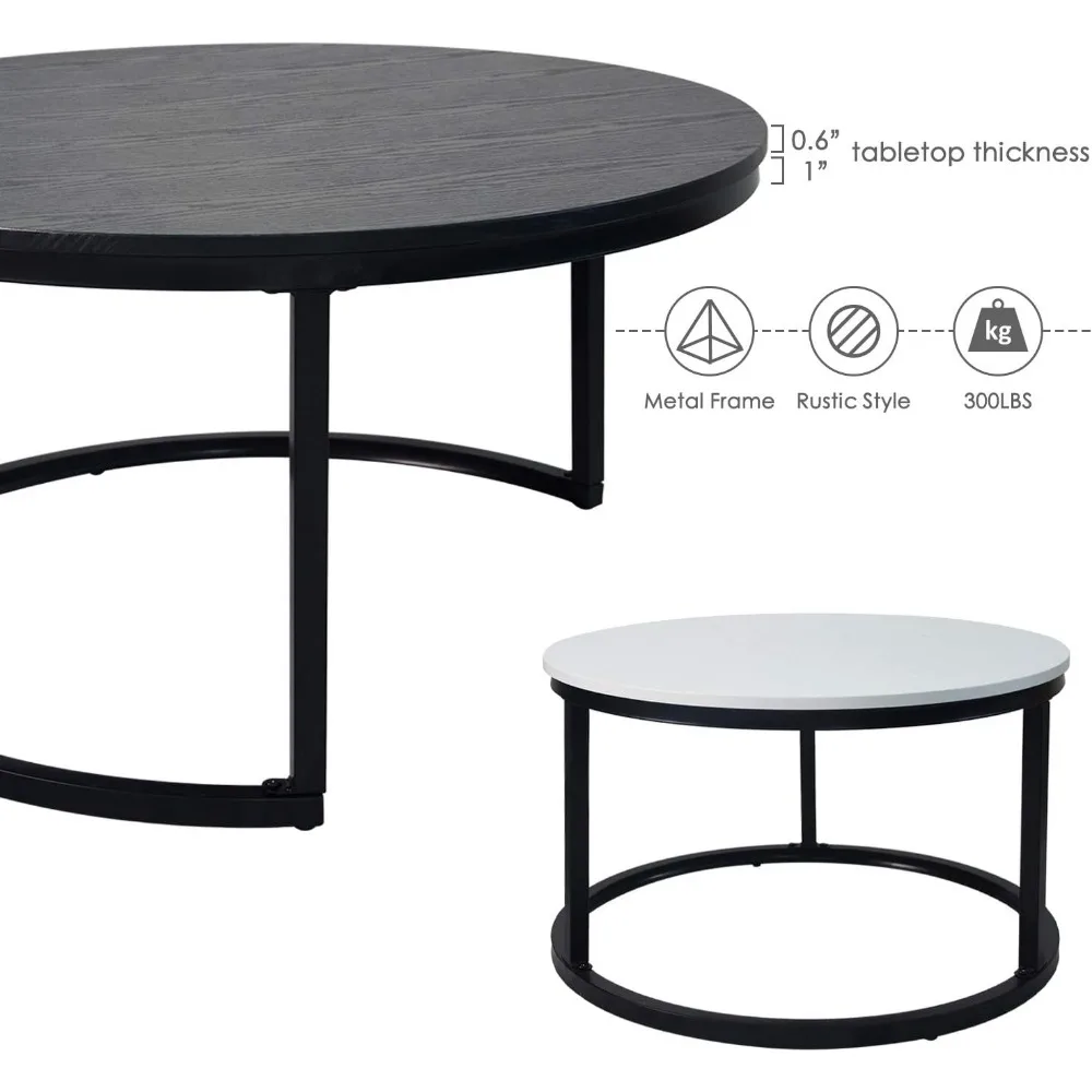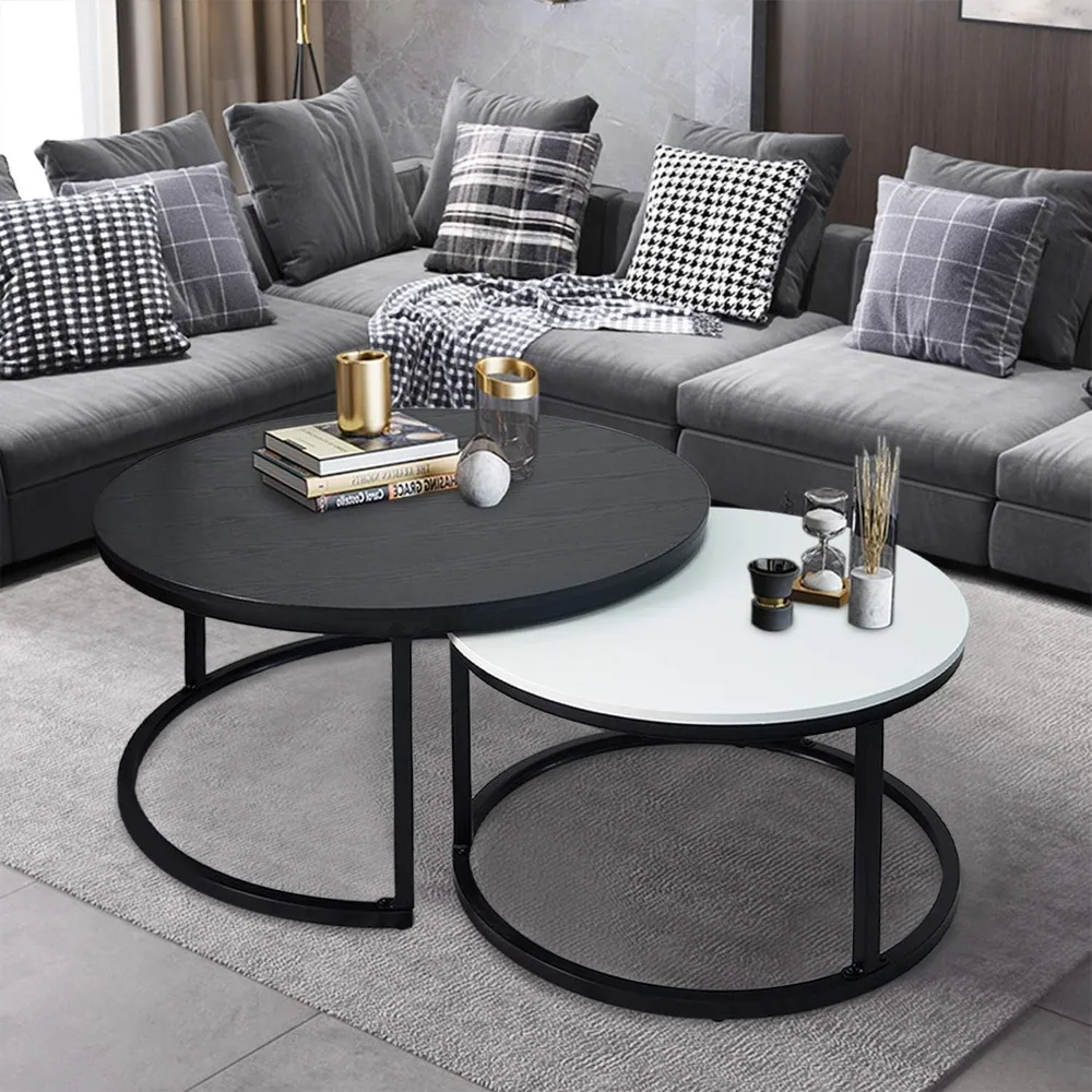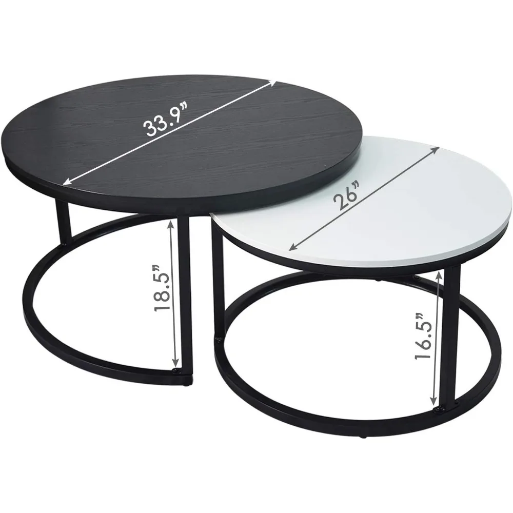 2 Round Nesting Table Set Circle for Living Room Modern (Black & White)