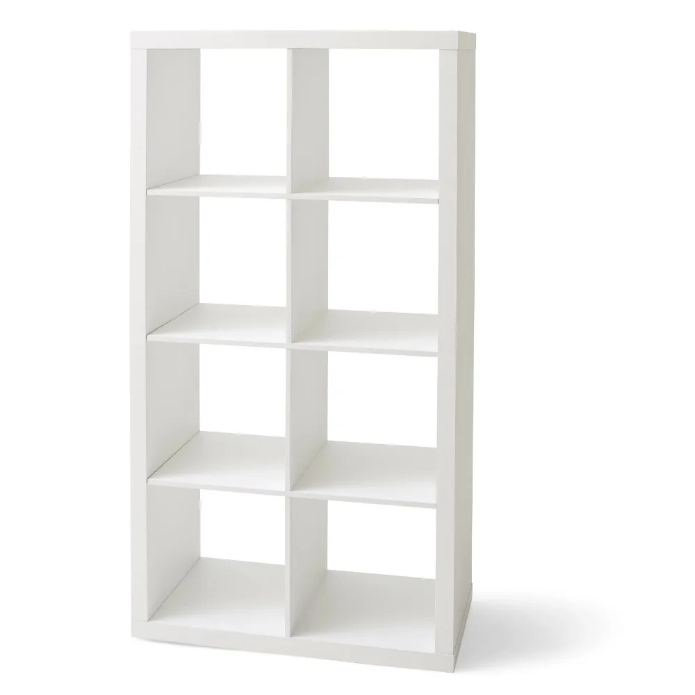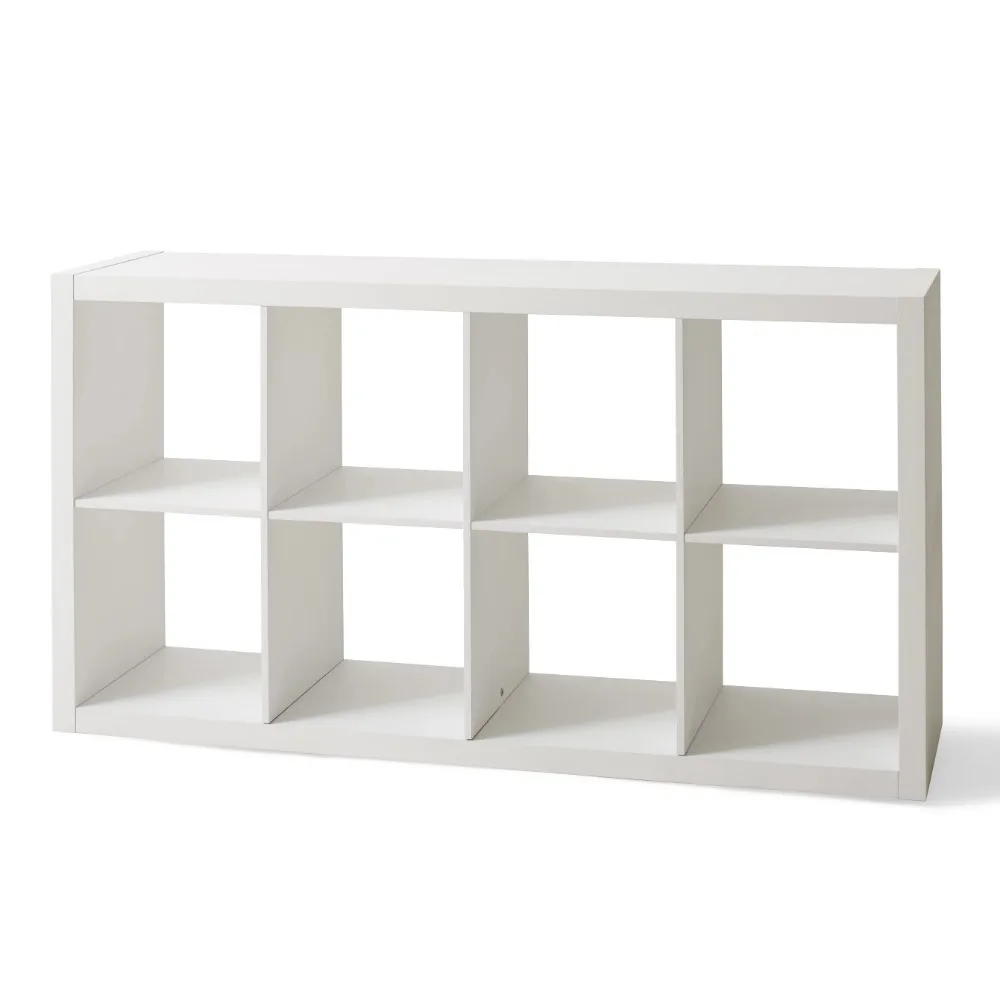 Add function and style to your home with the 8-Cube Storage Organizer. Available in multiple finishes, this cube organizer features eight 13" x 15" x 13" compartments, the perfect to display books, collectibles, photos, artwork, storage bins and baskets. The open back design makes it easy to manage cords and cables of electronics. This sturdy bookcase can stand vertically or horizontally to best make use of space. The top panel supports up to 100 lbs when vertical, and 150 lbs when horizontal. Combine it with other Cube Organizers and Cube Storage Bins (sold separately) to create a complete storage and display system. Easy to assemble with included instructions and wall attachment strap, the 8-Cube Storage Organizer is perfect for your office, living room, den, playroom and more.