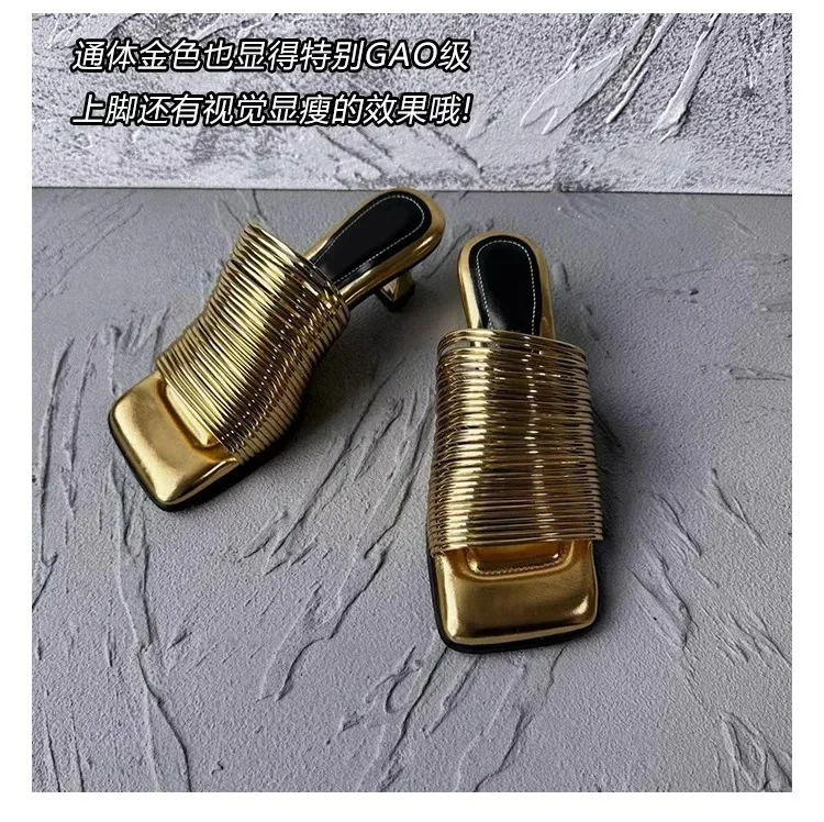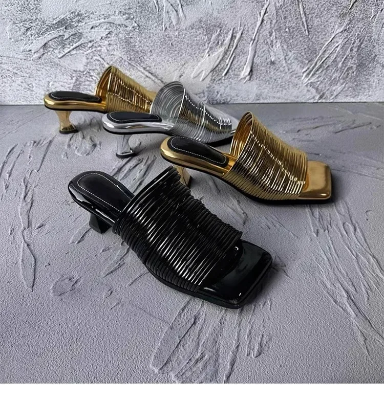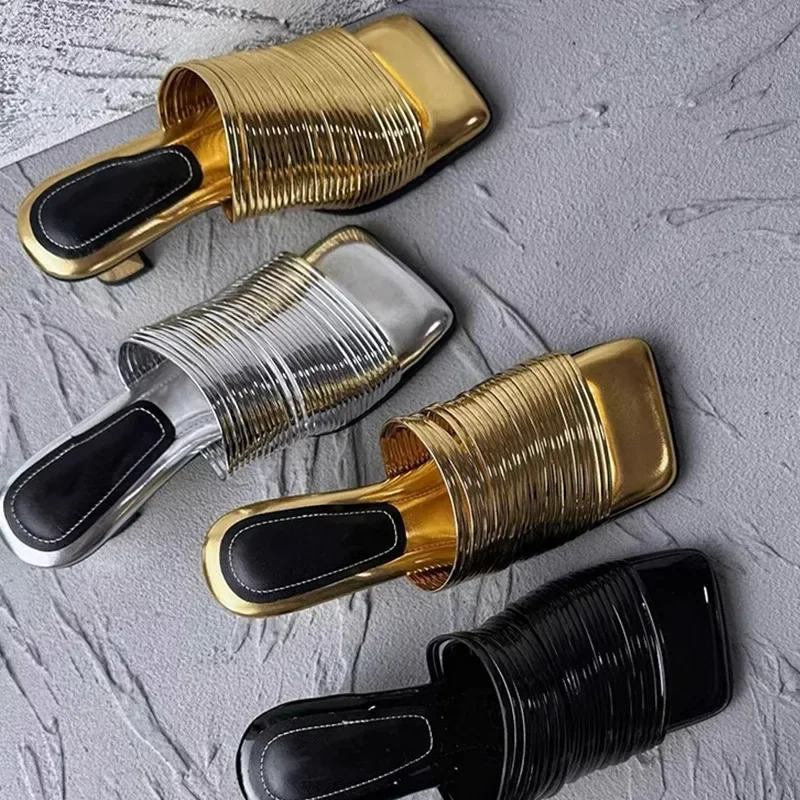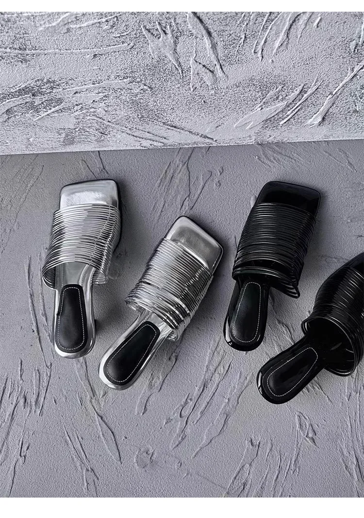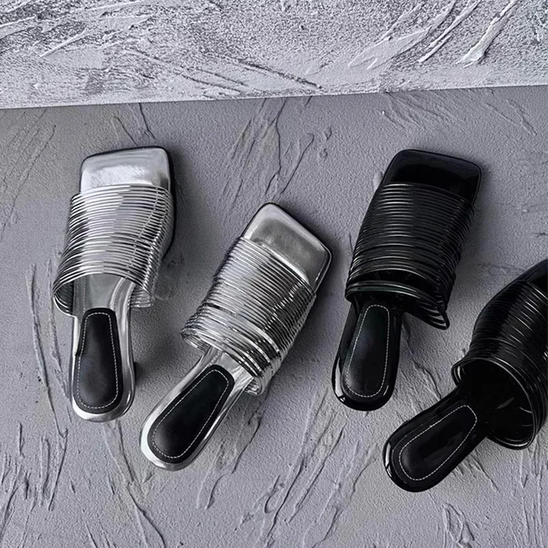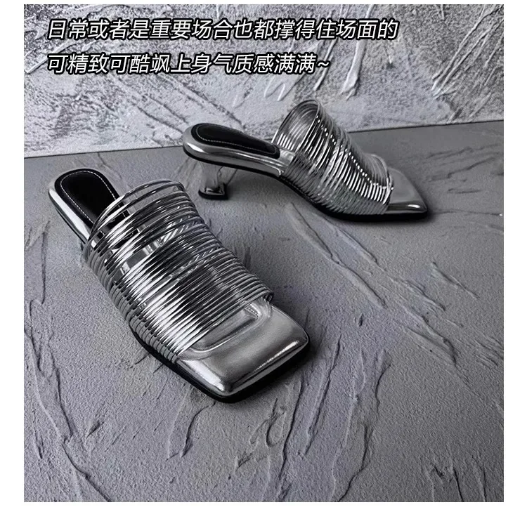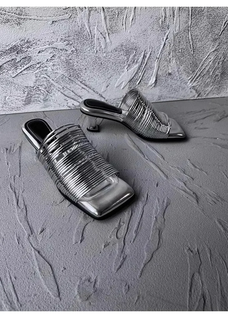 2024 New Fashion End Square Head Thin Silver Slippers