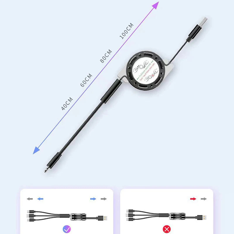 3 IN 1 Diamond Goddess USB Multi Cable Rhinestone Car Fast Charger