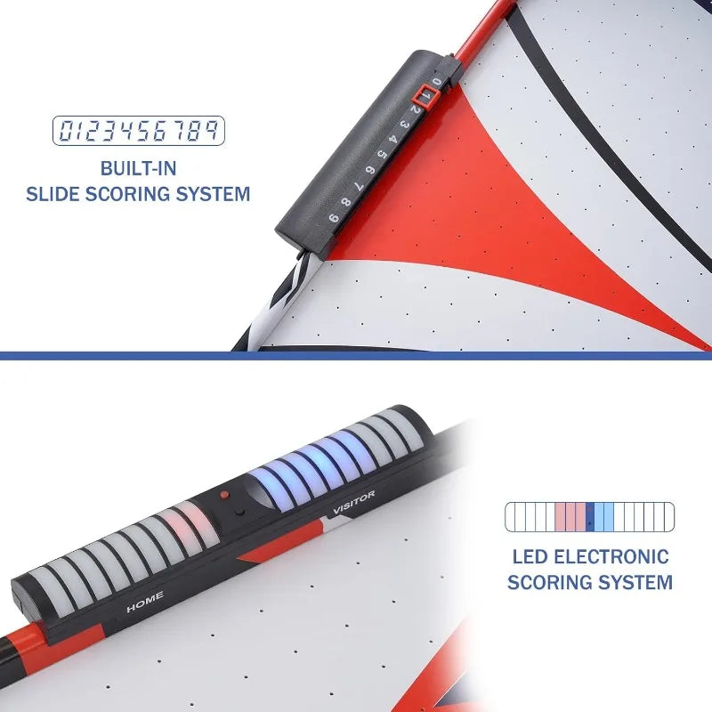 - Digital Led Scoreboard: Unlike previous electronic scoring, our air hockey requires no batteries; just connect to mains power to start playing. When the puck-catcher sensor is triggered, the LED scorer starts to light up, allowing you to accurately track and record both your and your opponent's scores. Additionally, you have the option to use the manual scorer to keep track