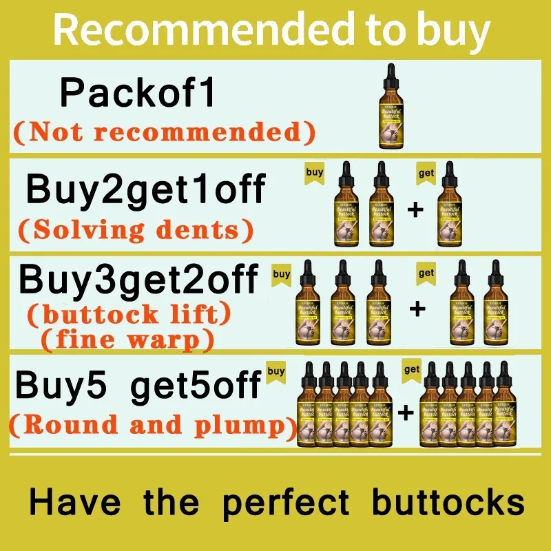Advantage: This essential oil is specially formulated to enhance and shape the buttocks, providing instant lifting, firming, and a sexy massage experience for naturally fuller and shapelier hips