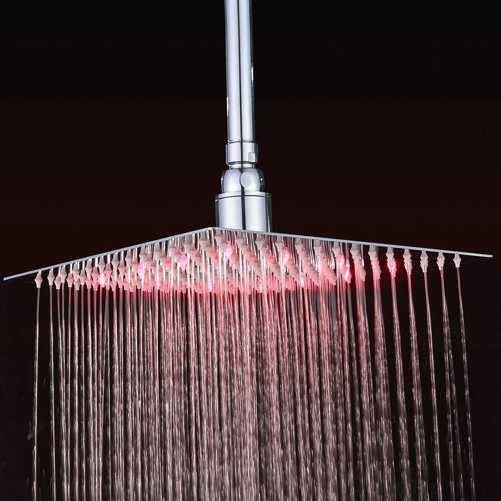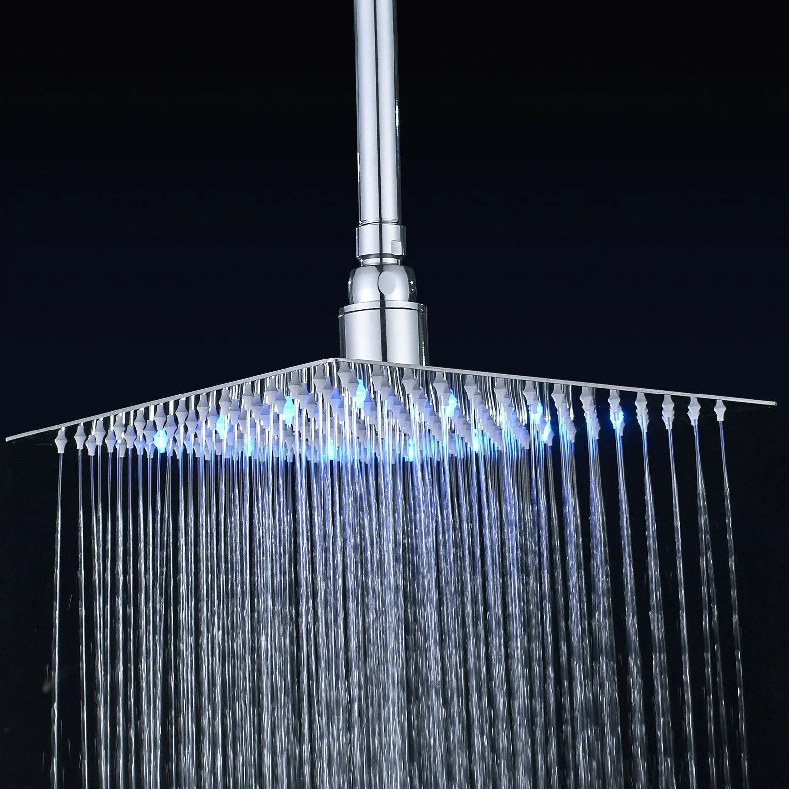Chrome LED Rainfall Shower Head Stainless Steel Color Changing