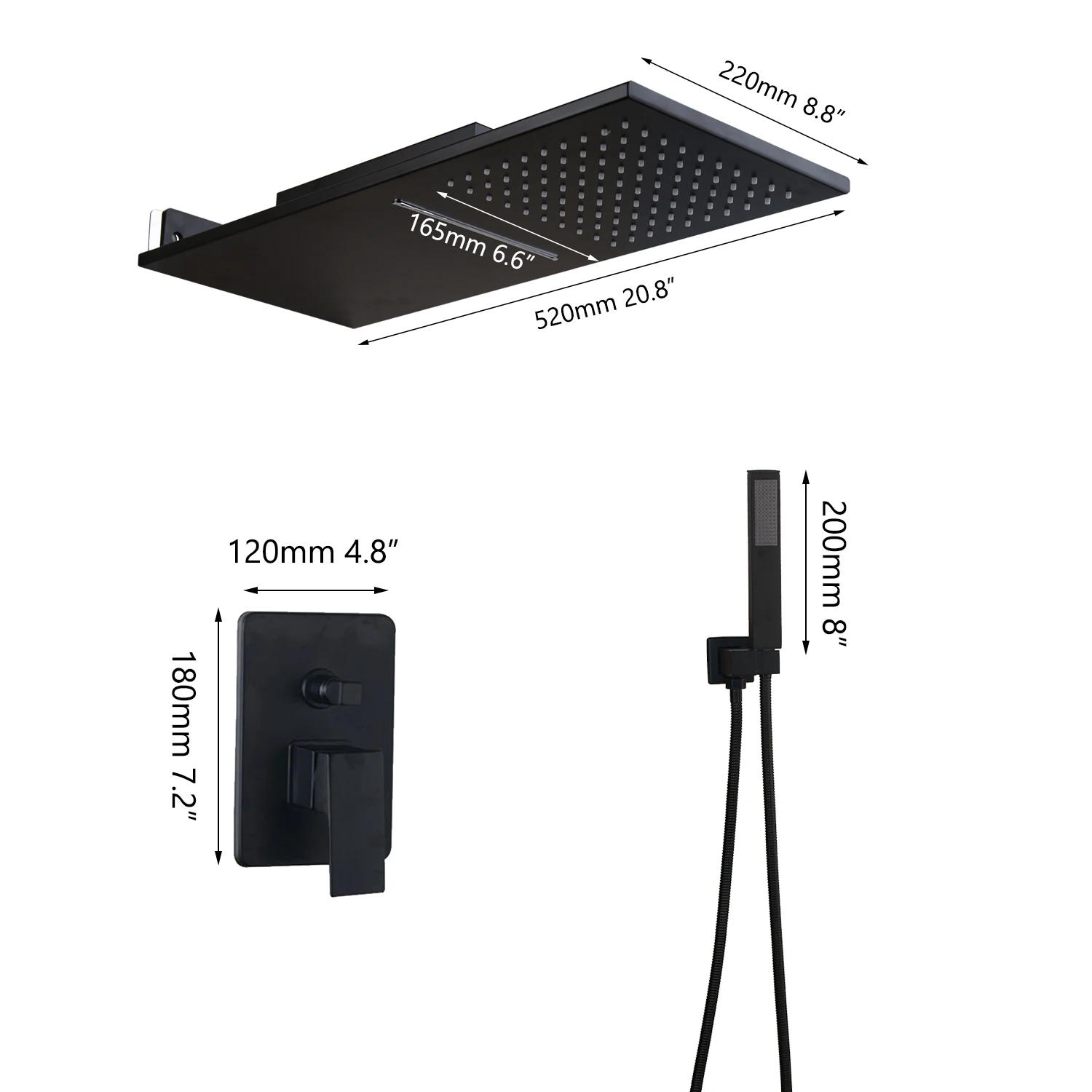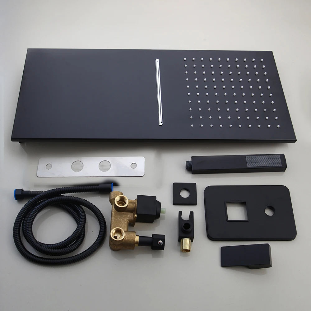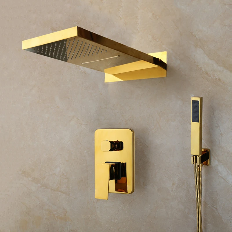Golden Black Shower System with Hand Spray 3 Functions Rainfall Shower Head