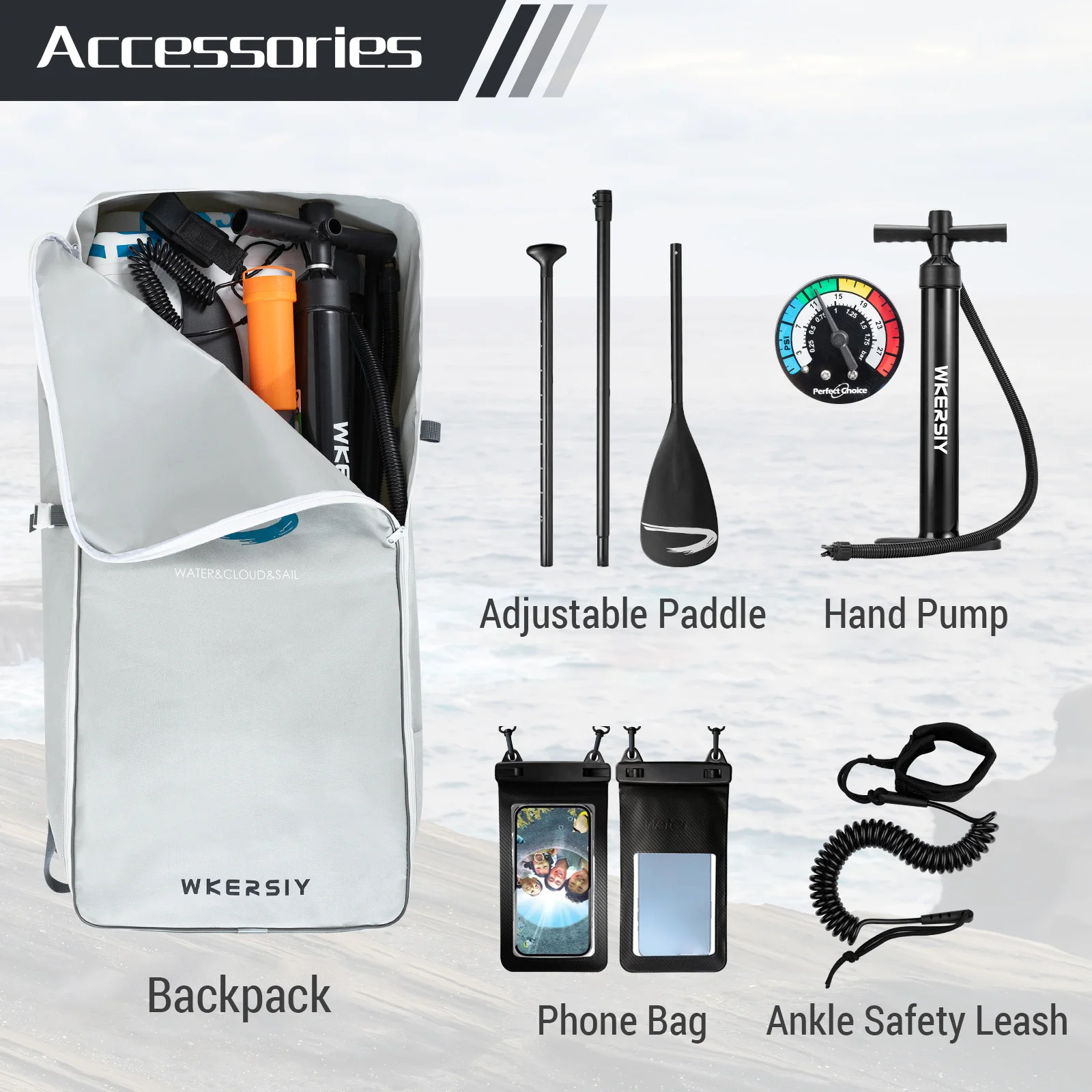 The extra wide SUP design is easy for beginners to stand up and keep balance. Soft anti-slip EVA deck pad greatly improved stability and safety while standing. Quickly inflates and deflates for portability. Great for adults, teens, youth with pets of all skill levels.