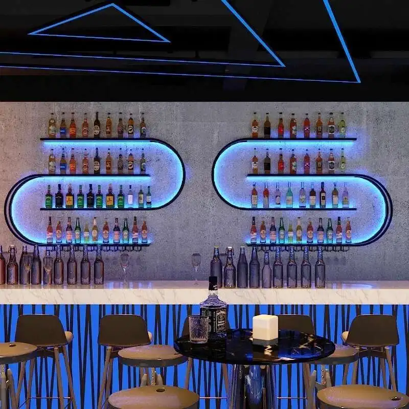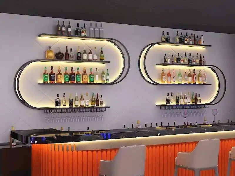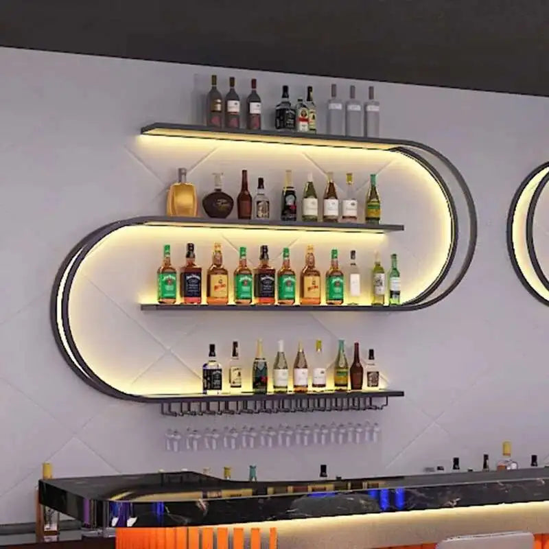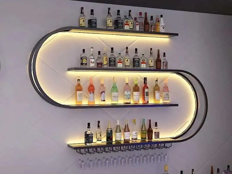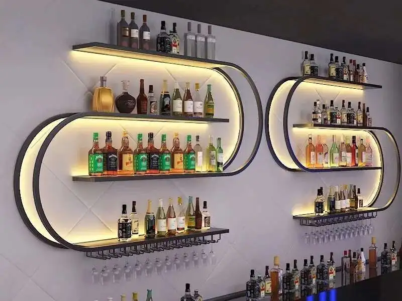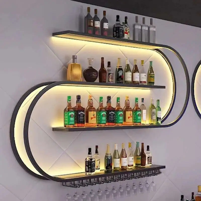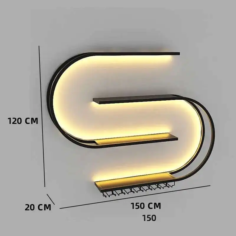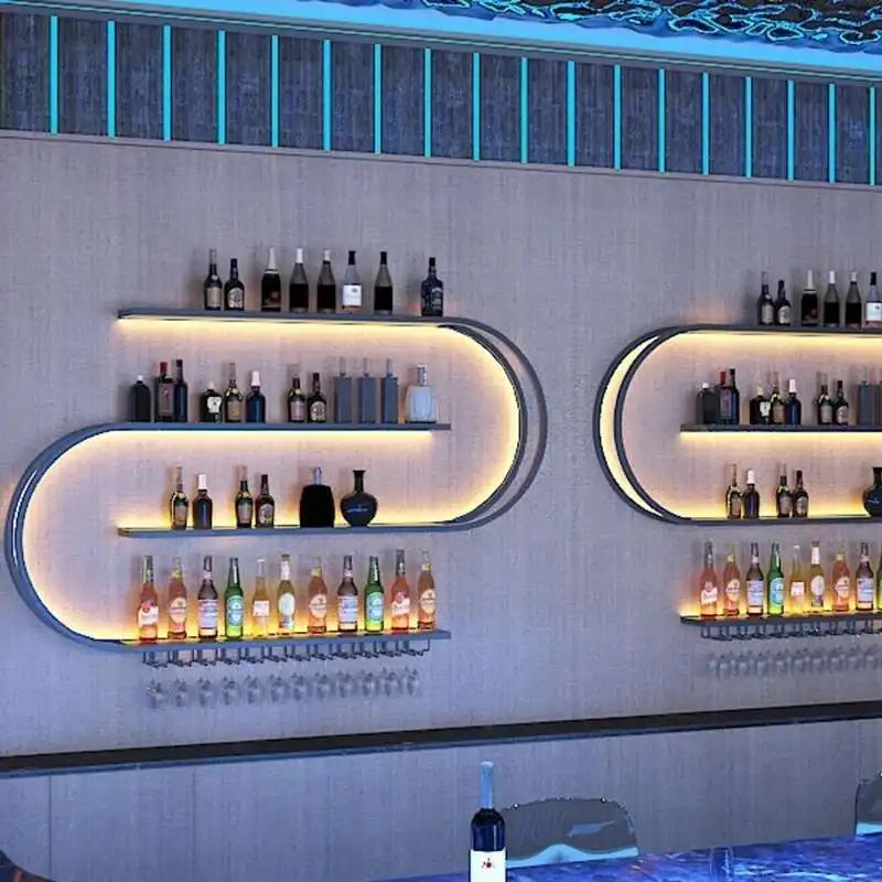 Nordic Wrought Iron Wine Cabinets for Bar Furniture Wall Mounted Wine Rack Creative Geometric Art Restaurant Showcase with Light