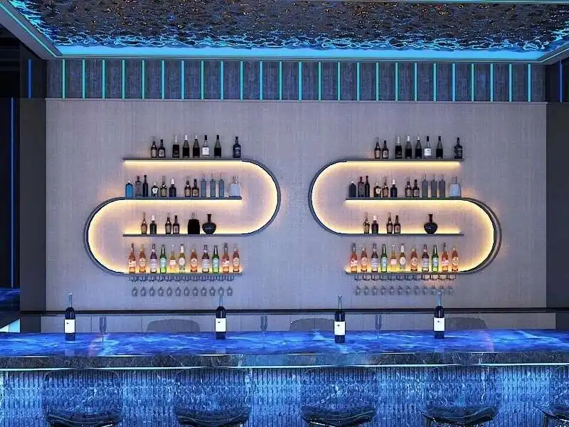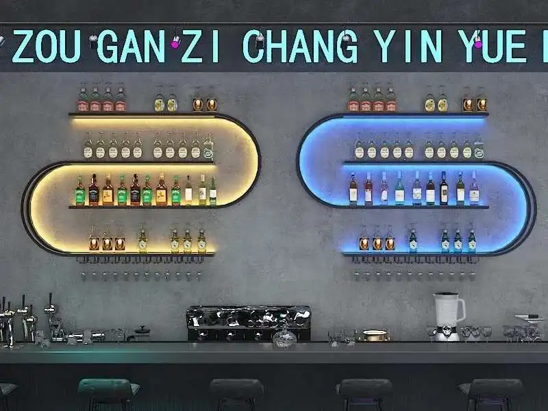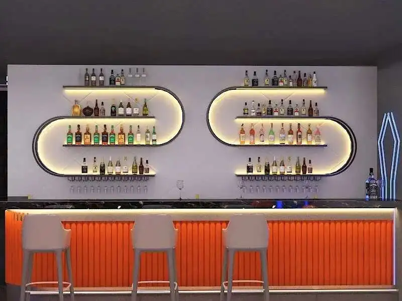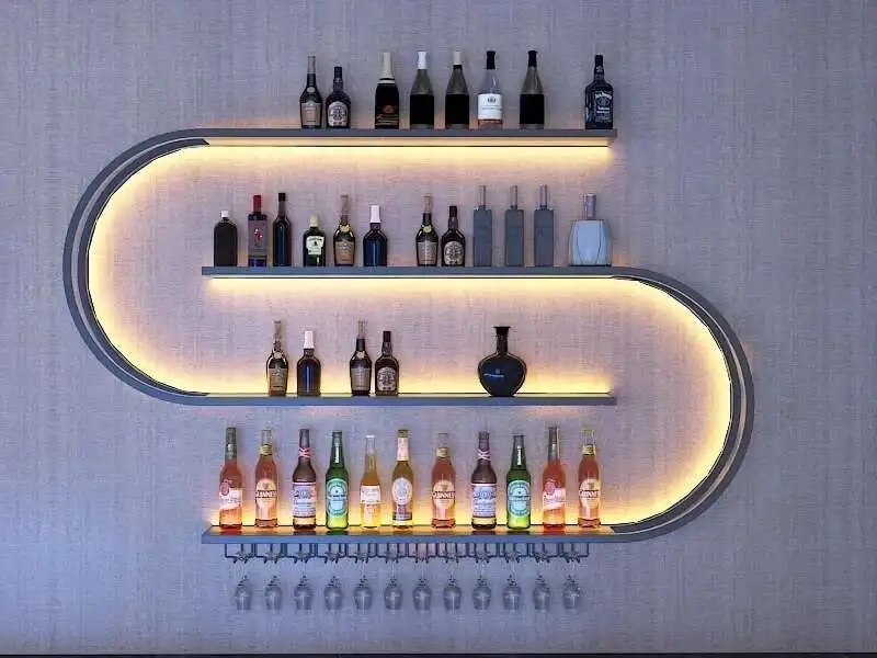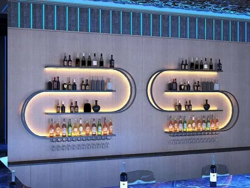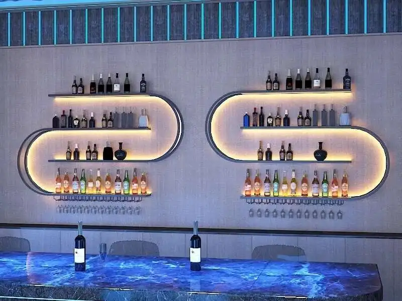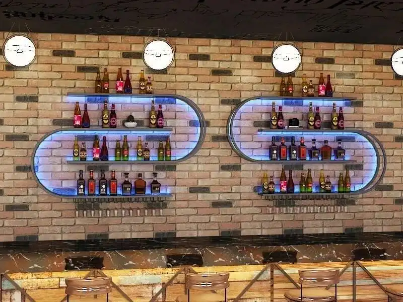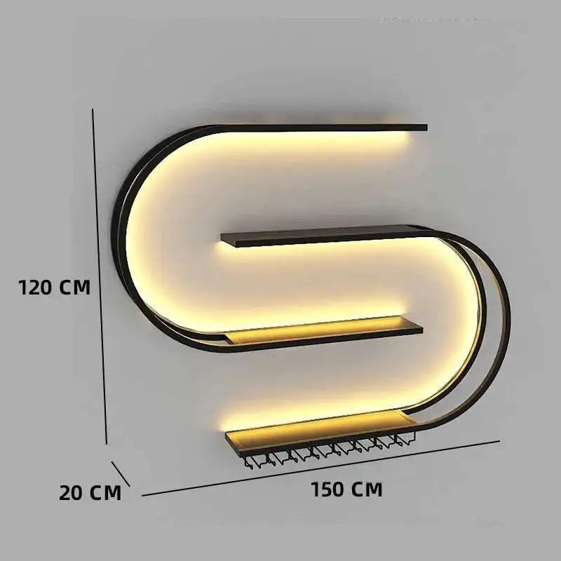 Nordic Wrought Iron Wine Cabinets for Bar Furniture Wall Mounted Wine Rack Creative Geometric Art Restaurant Showcase with Light