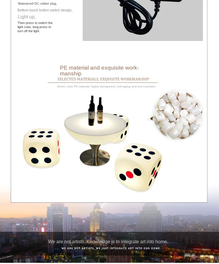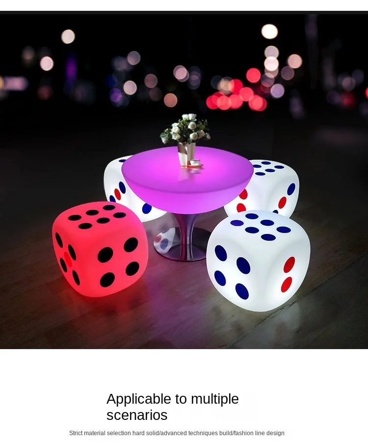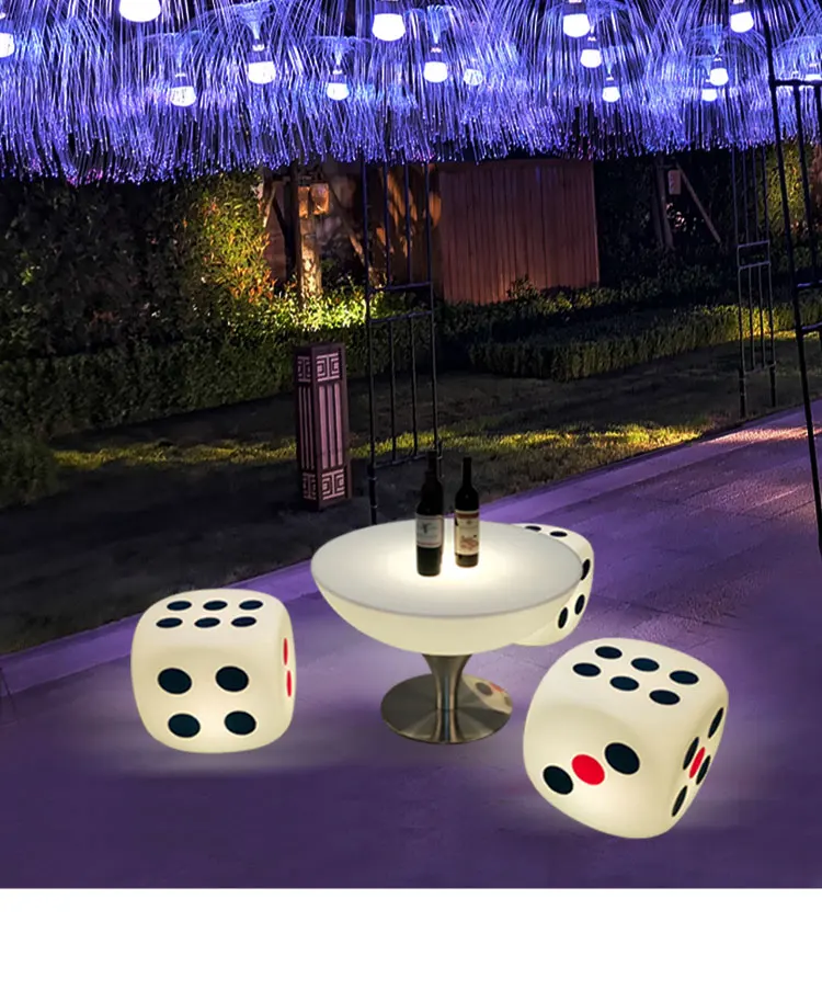 LED Dice Barstool and Table Set Illuminated