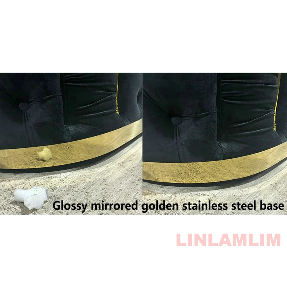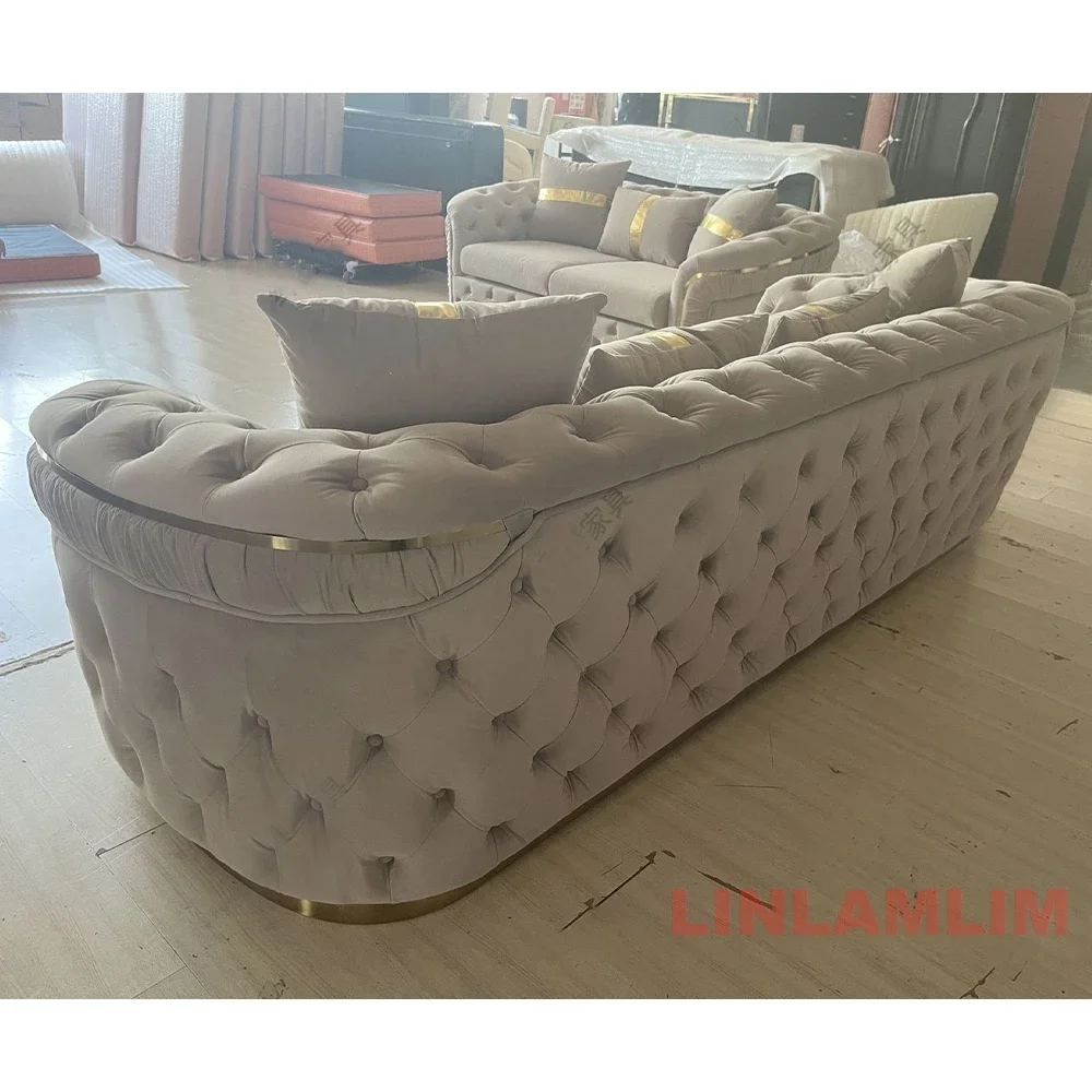 MANBAS Luxury Chesterfield Sectional Sofa Set with Cloth Buttons and Fabric Modular Couch for Living Room Seating Home Furniture, Modern Design Velvet Chesterfield Sofa Set with Gold Stainless Steel Base, Three Seater Sofa