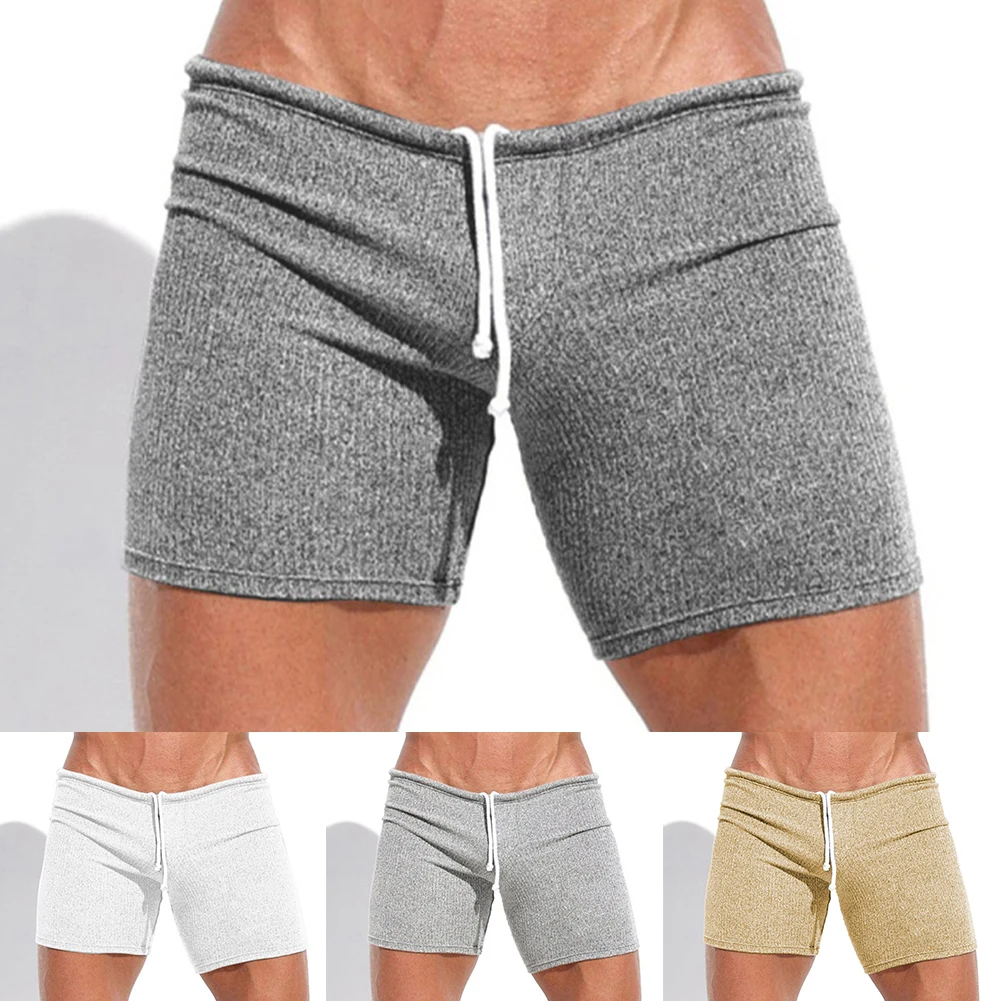 Mens Sexy Drawstring Ribbed Sleepwear Shorts