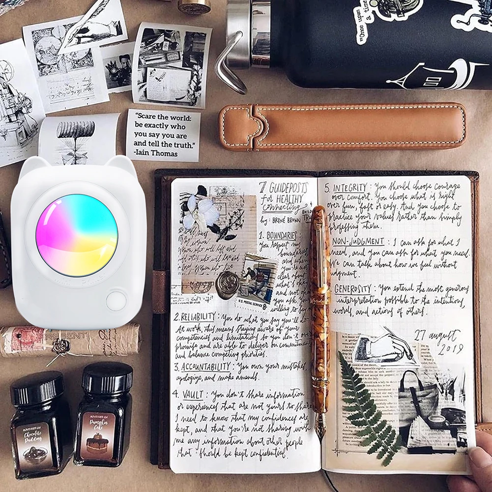 Mini Portable Thermal Printer Wireless Bluetooth-Compatible Inkless Adhesive Sticker Printer 200DPI Photo Label Memo Wrong Question Thermal Printer with 1 Rolls Paper Gift for Child Birthday