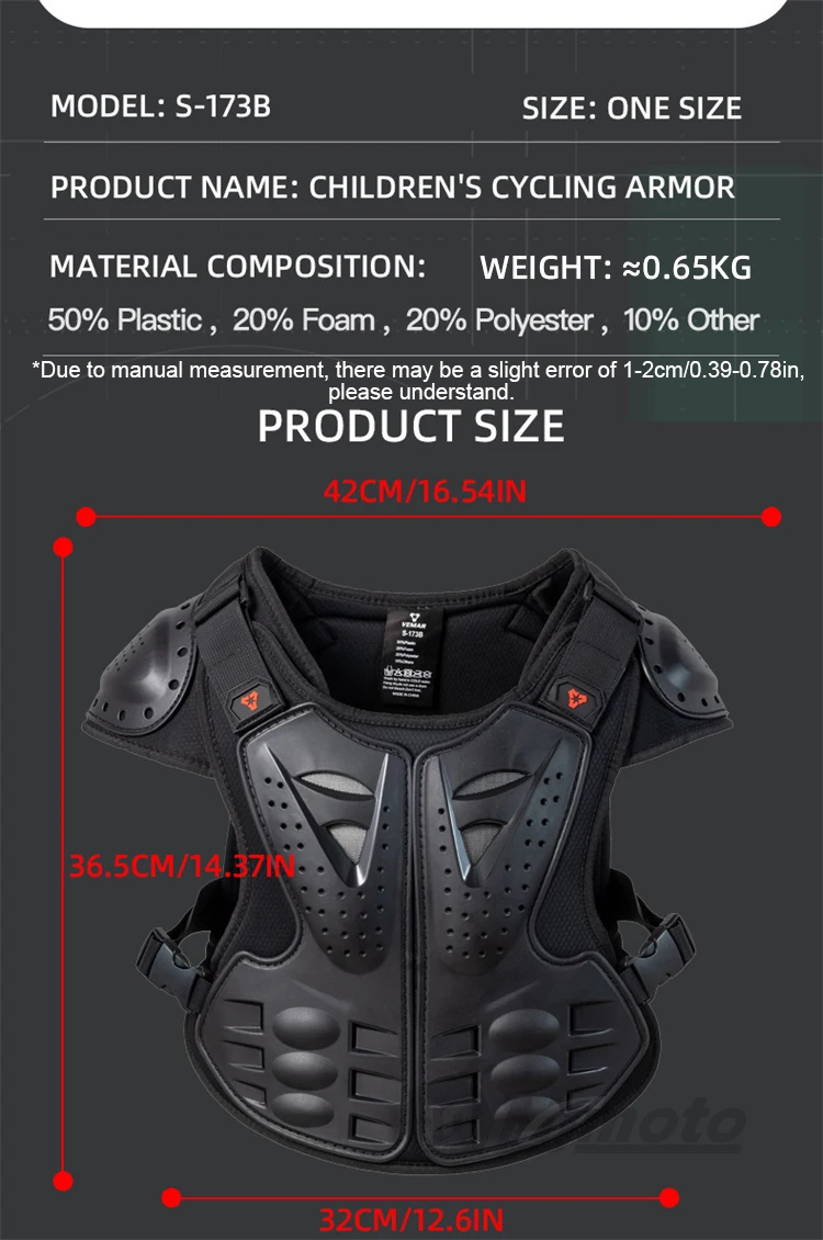 VEMAR S-173B Armor Clothing Kids Body Chest Spine Protector Protective Guard Vest Motorcycle Jacket Child Armor Gear For Motocross Dirt Bike Skating S-172KE Knee Elbow Pads