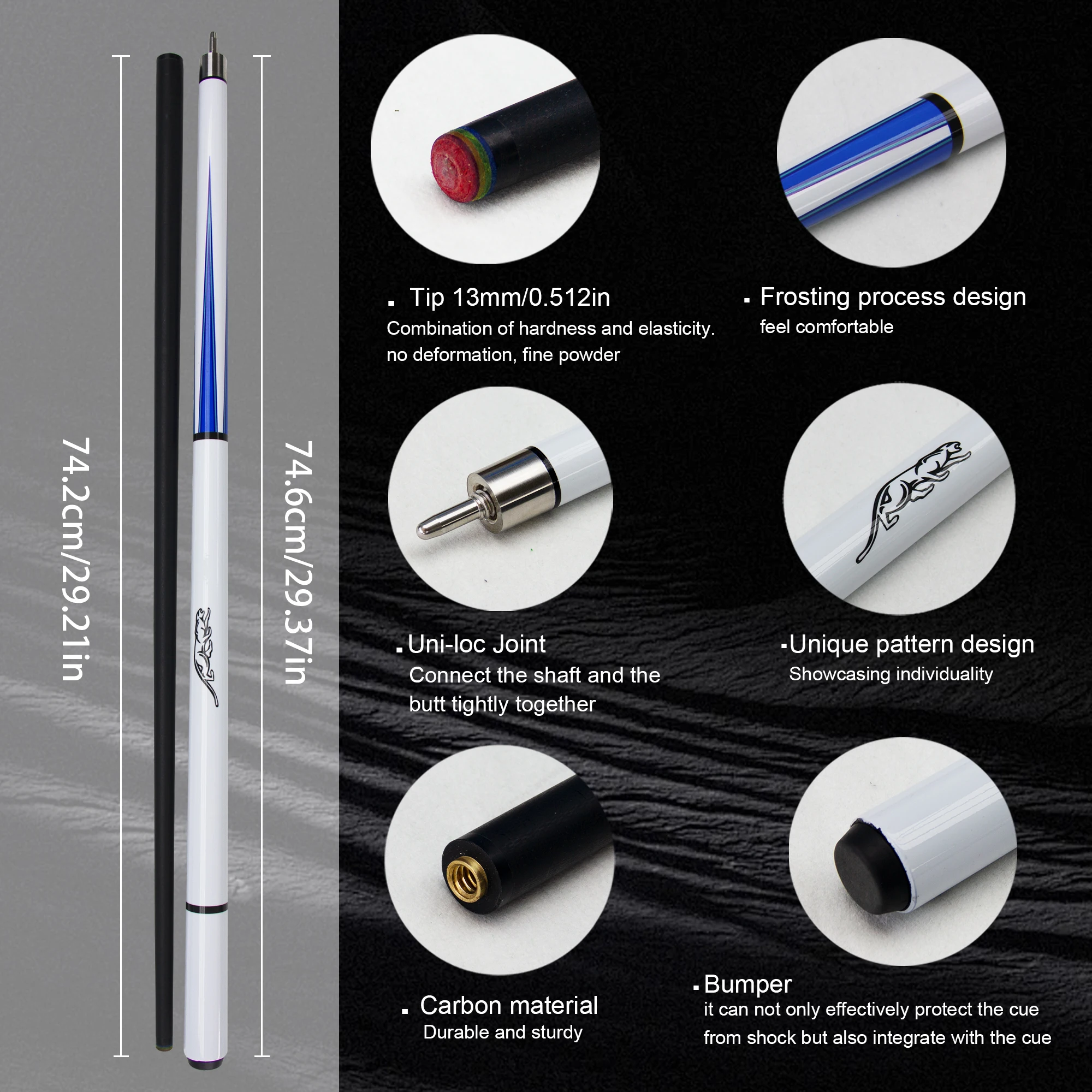 The striking leopard pattern on our billiard cues not only enhances their visual appeal but also adds a unique touch to your game, making you stand out on the table. Crafted from durable fiberglass, these pool cues are engineered for longevity and optimal performance, resistant to warping and maintaining their quality over time.