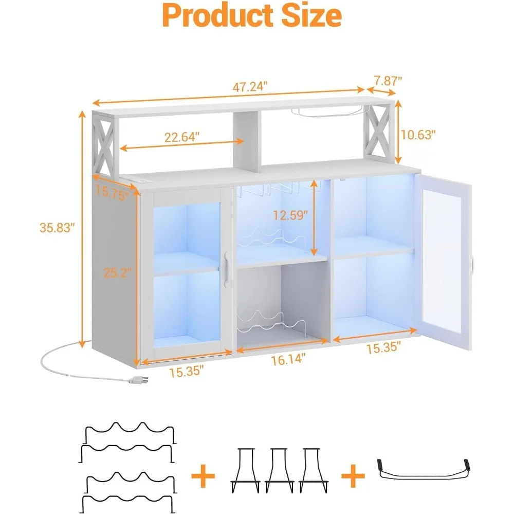 - Bar Cabinet With Charging StationCable length is 6.56 feet.Our bar cabinet comes with 3 outlets and 2 USB ports to help you easily charge your coffee maker, juicer, bar accessories, lighted decorations and even cell phones and other appliances. The design adds more convenience to your life.