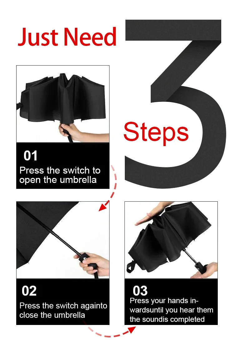 Windproof Fully Automatic Compact 3 Folding Umbrella