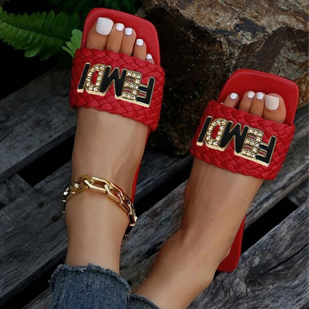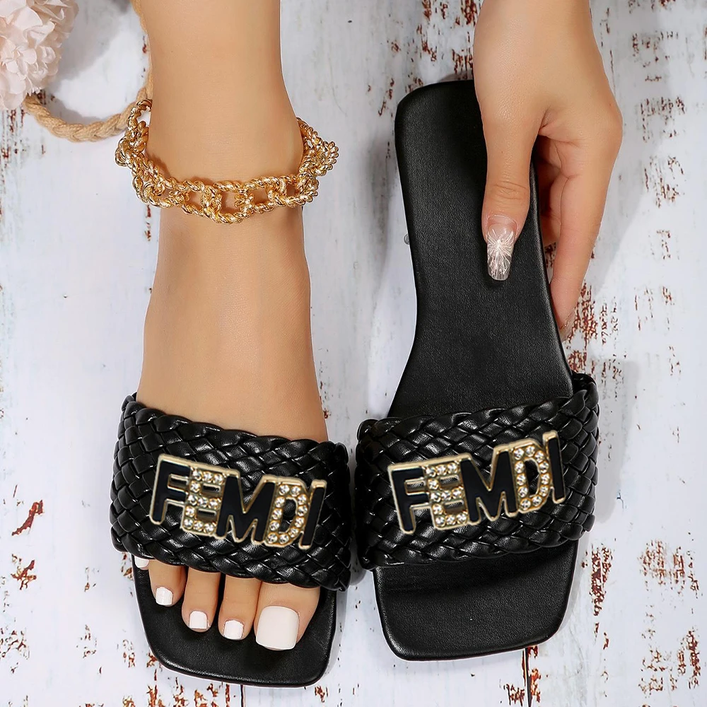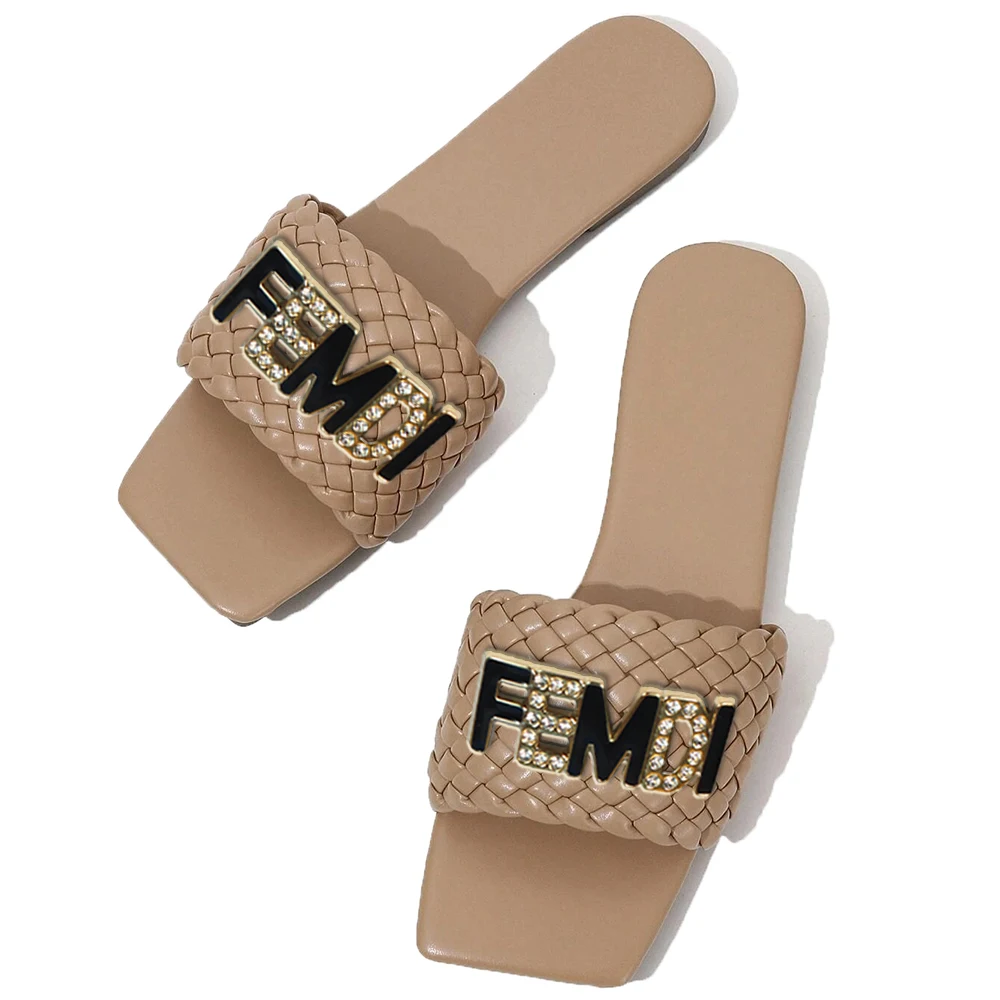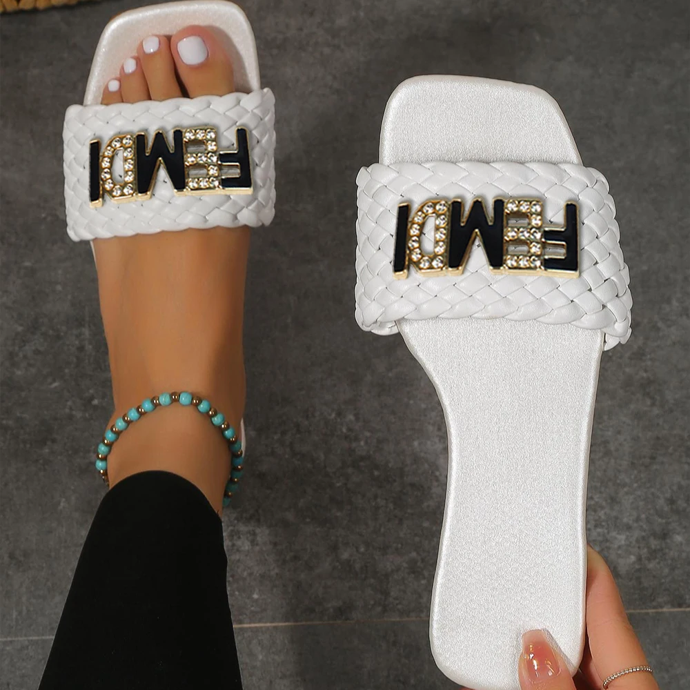 Women Luxury Decor Weave Design Flat Open-toe Slides