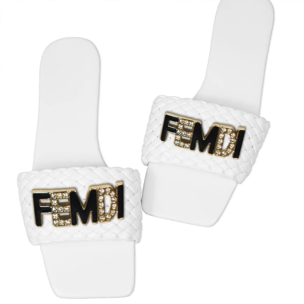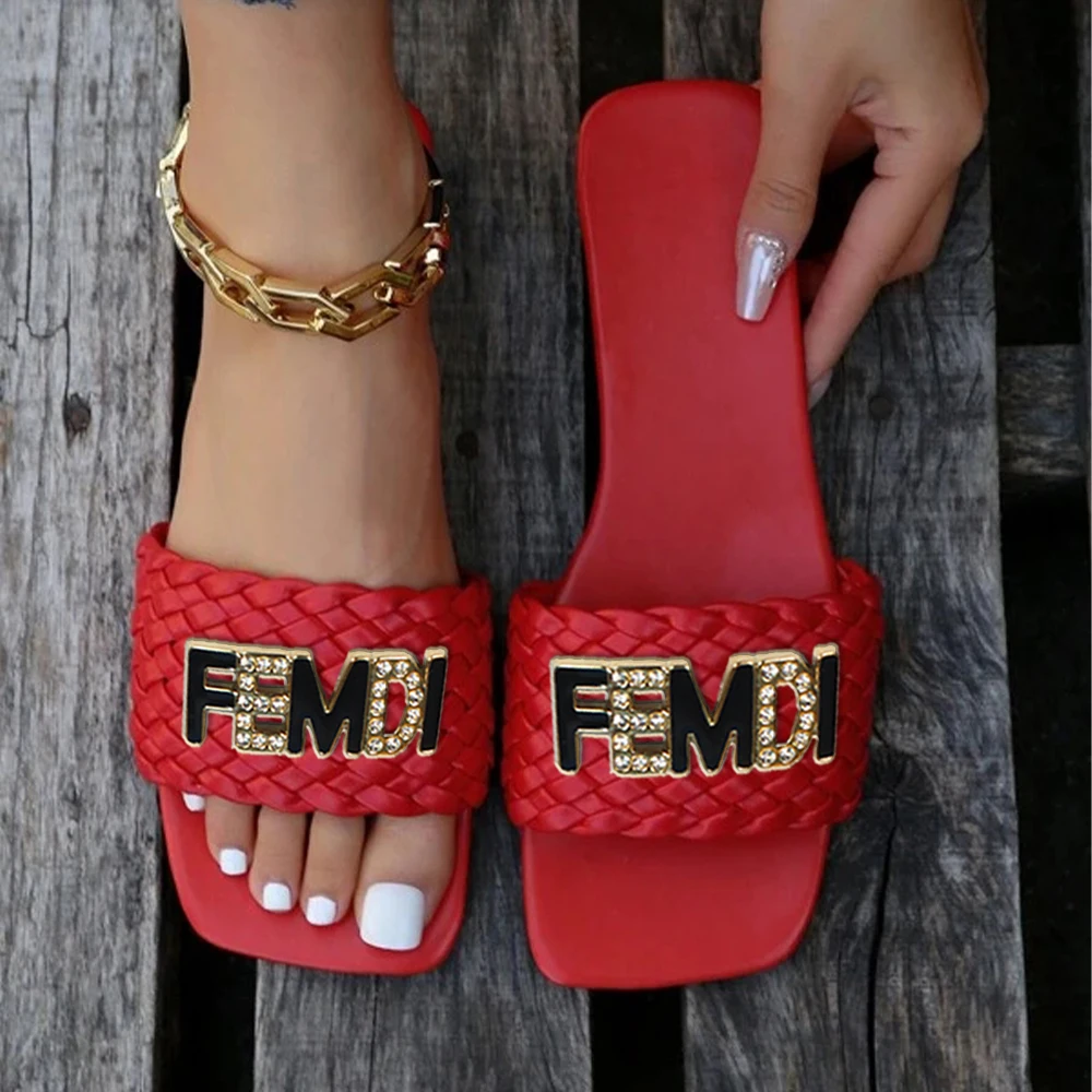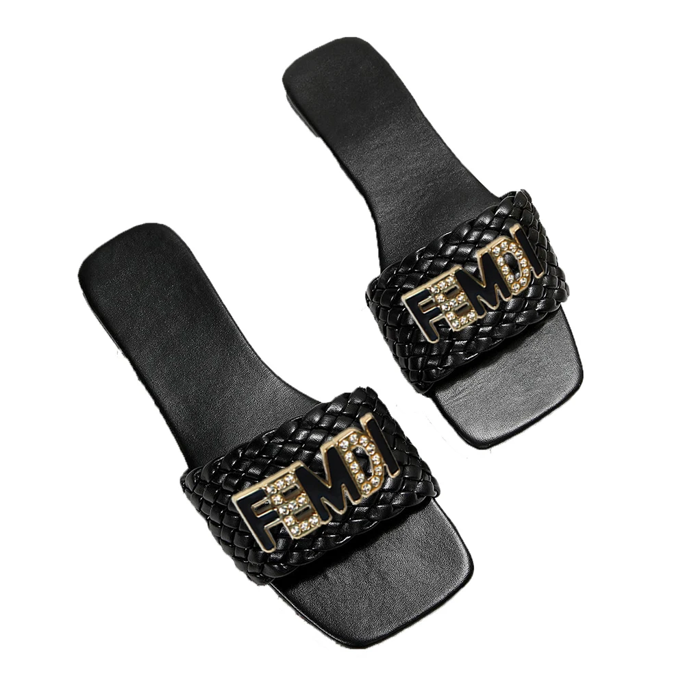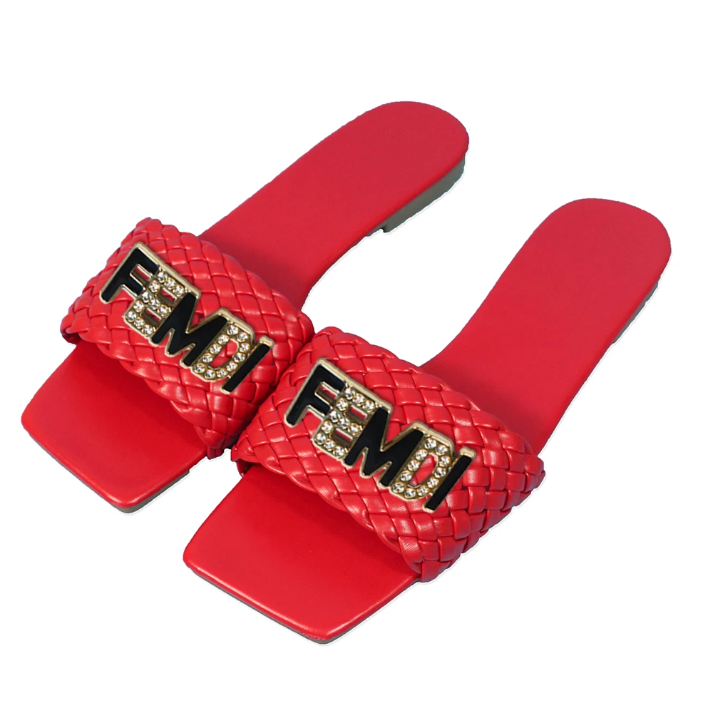 Women Luxury Decor Weave Design Flat Open-toe Slides