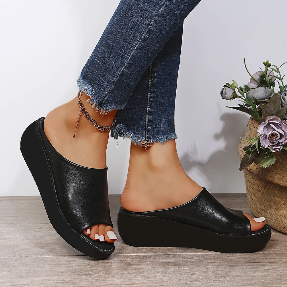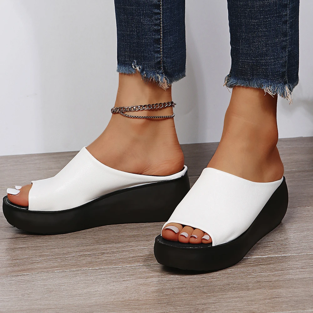 Women Casual Slip On Sandals Non Slip Wedge Platform Sandals Fashion Open Toe Sandals Height Increasing for Seaside Vacation