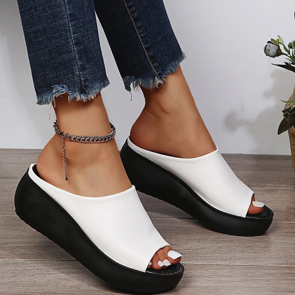 1.Elevated Comfort Heels: Experience both style and comfort with our wedges platform sandals featuring a contoured wedge heel that not only flatters your silhouette but also provides a stable, comfortable walking experience. The cleverly designed slope offers an ergonomic fit that naturally complements your foot's arch, reducing the strain on your legs and feet during extended wear.