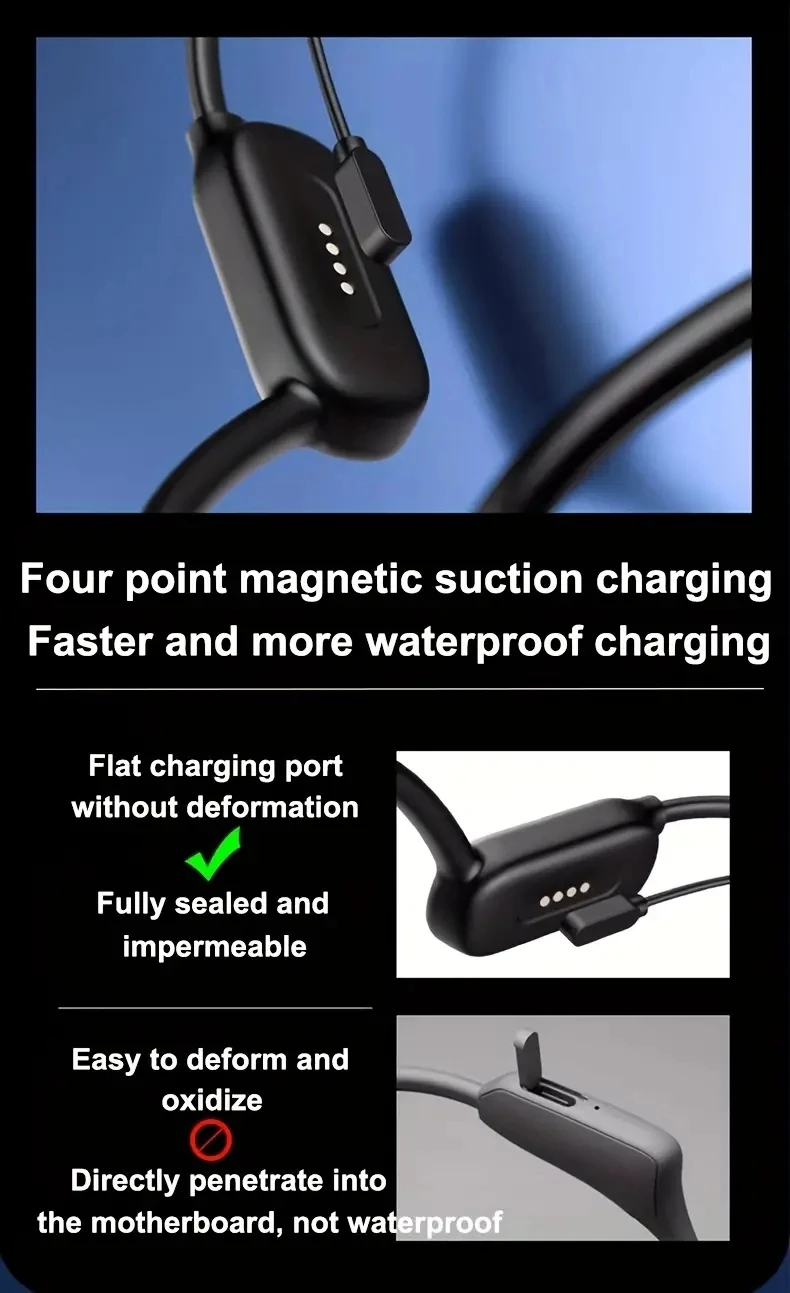 3. After each exercise, please wipe the water on the surface of the earphones, especially the charging magnetic suction position should be cleaned in time to prevent sweat and salt water from corroding and charging mouth, affecting the product life.